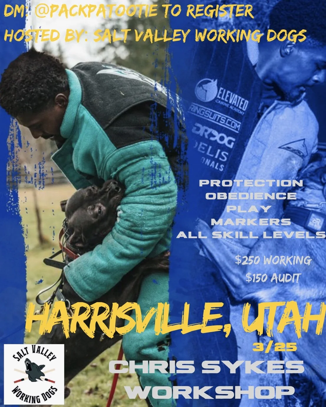 Two Day workshop with Chris Sykes. This will cover play, markers, obedience, protection, and anything else you might be interested in working with your dog!